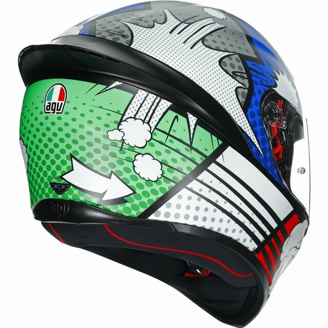 Aerodynamic shape, racing-developed front air vents and wind-tunnel engineered aero spoiler maximize performances while providing stability at higher speed. Panoramic anti-scratch visor allows a wider lateral and vertical field of vision for a total control of the environment. Comfort is no-compromise with Dry-Comfort soft removable interiors.
