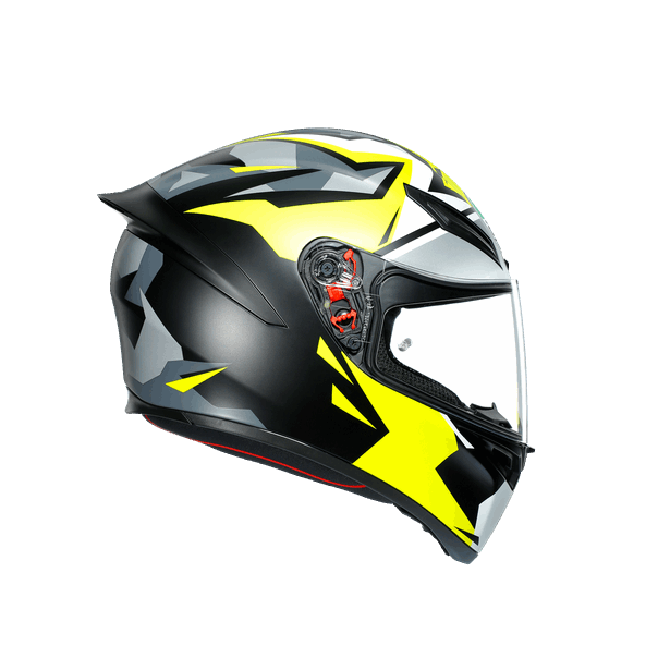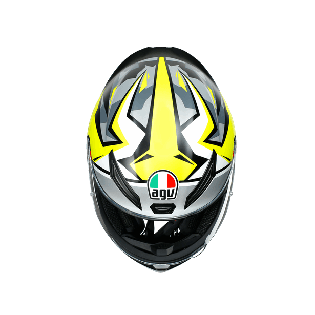 Aerodynamic shape, racing-developed front air vents and wind-tunnel engineered aero spoiler maximize performances while providing stability at higher speed. Panoramic anti-scratch visor allows a wider lateral and vertical field of vision for a total control of the environment. Comfort is no-compromise with Dry-Comfort soft removable interiors.