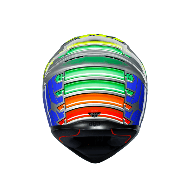 Aerodynamic shape, racing-developed front air vents and wind-tunnel engineered aero spoiler maximize performances while providing stability at higher speed. Panoramic anti-scratch visor allows a wider lateral and vertical field of vision for a total control of the environment. Comfort is no-compromise with Dry-Comfort soft removable interiors.