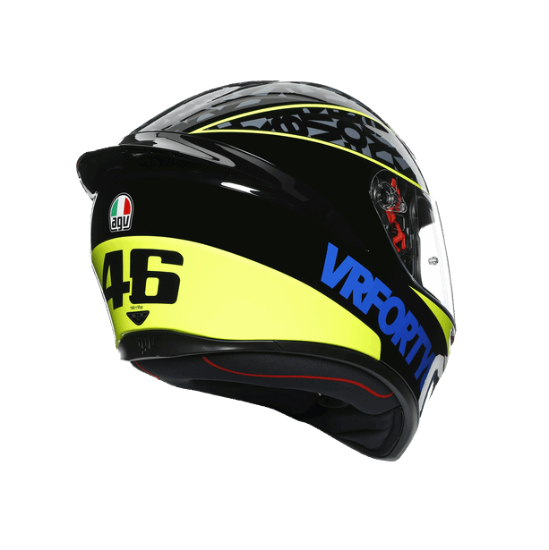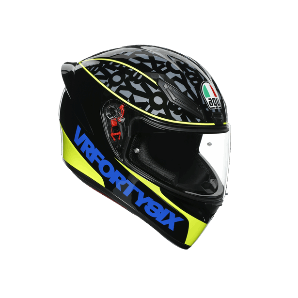 Aerodynamic shape, racing-developed front air vents and wind-tunnel engineered aero spoiler maximize performances while providing stability at higher speed. Panoramic anti-scratch visor allows a wider lateral and vertical field of vision for a total control of the environment. Comfort is no-compromise with Dry-Comfort soft removable interiors.