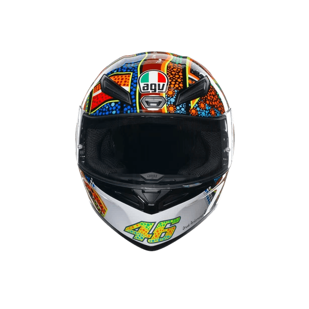 Aerodynamic shape, racing-developed front air vents and wind-tunnel engineered aero spoiler maximize performances while providing stability at higher speed. Panoramic anti-scratch visor allows a wider lateral and vertical field of vision for a total control of the environment. Comfort is no-compromise with Dry-Comfort soft removable interiors.