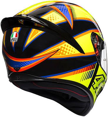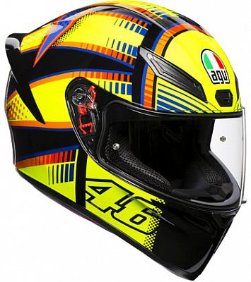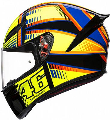 Aerodynamic shape, racing-developed front air vents and wind-tunnel engineered aero spoiler maximize performances while providing stability at higher speed. Panoramic anti-scratch visor allows a wider lateral and vertical field of vision for a total control of the environment. Comfort is no-compromise with Dry-Comfort soft removable interiors.