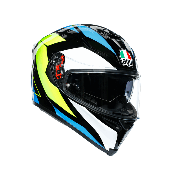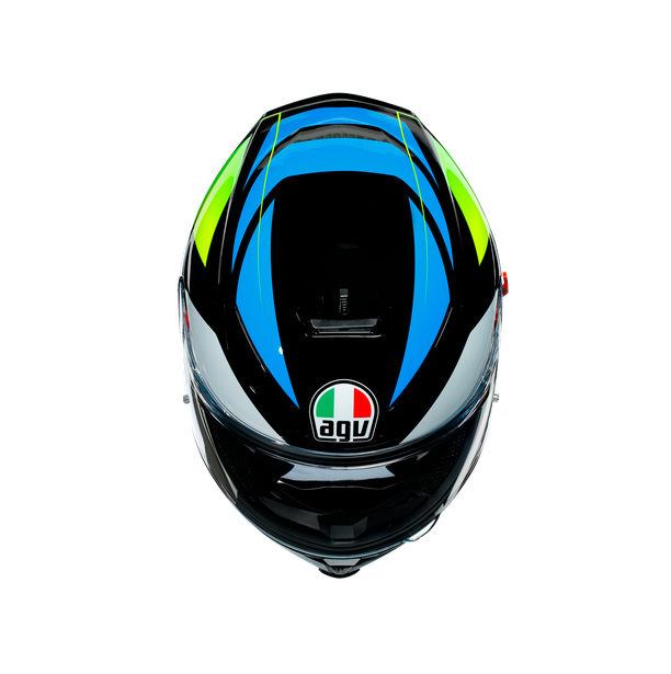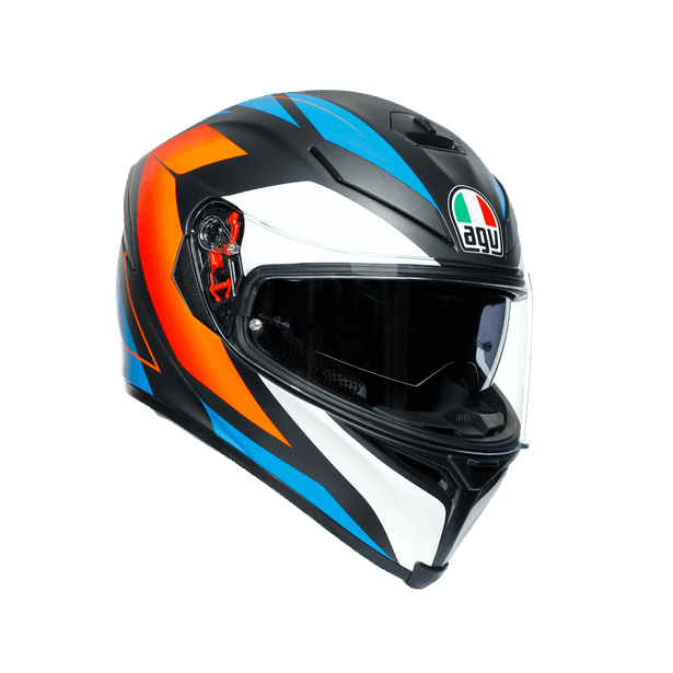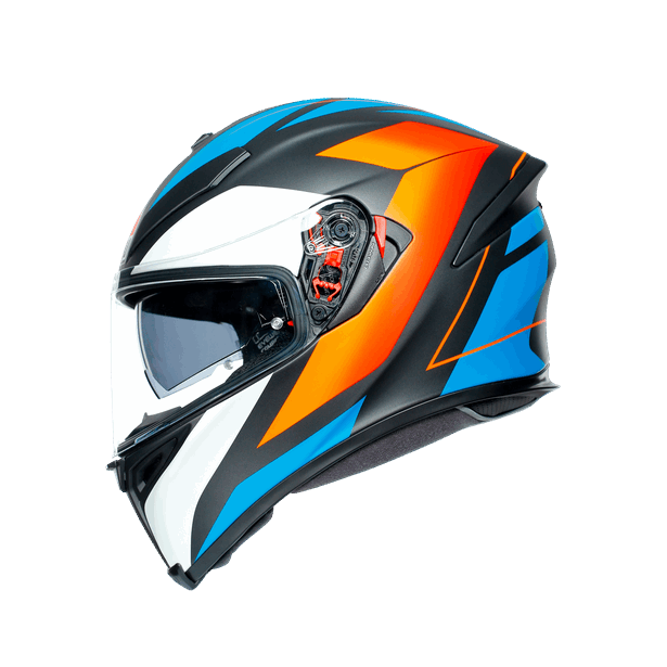 AGV’s latest version of this premium sport helmet now features a new construction for the inner liner, designed with high-performance fabrics and with no stitching in sensitive areas, making for an extremely comfortable fit. The lightweight shell is made from a carbon-fi berglass mix, while stability and aerodynamic performance are maximized thanks to an incorporated spoiler. The Integrated Ventilation System (IVS) has vents that are hollowed into the shell, and there’s also an internal drop-down sun visor, a removable nose guard and a new wind protector that keeps noise to a minimum.