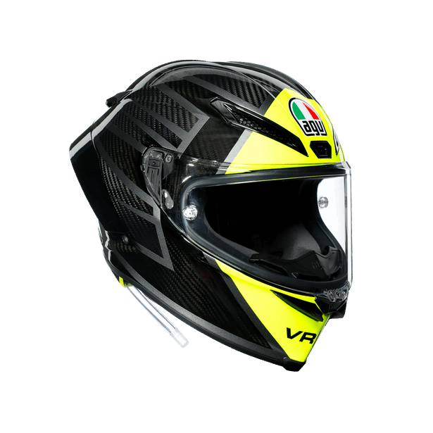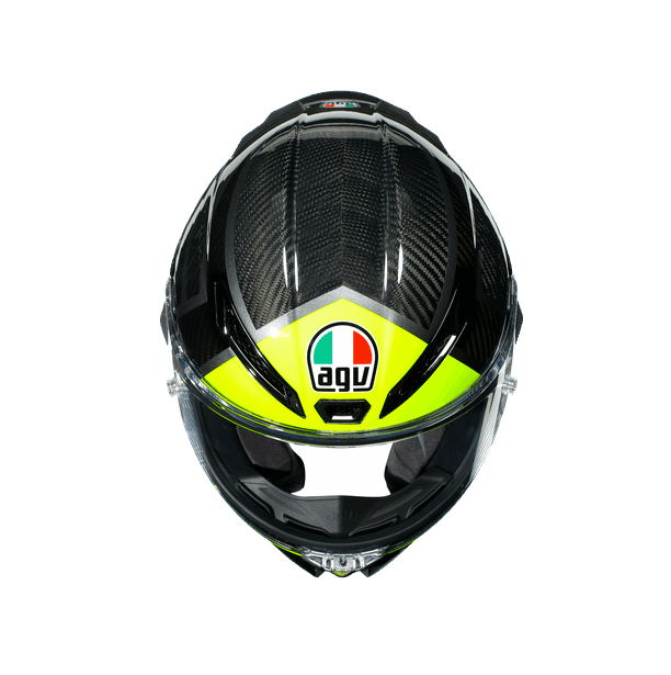 Pista GP RR is an exact replica of the AGV helmet used in races by professional world championship riders. It has therefore received FIM homologation, which certifies the highest possible level of protection, even against any dangerous twisting of the head. Every detail is designed to ensure ultimate performance. The Extreme Carbon shell in 100% carbon fiber guarantees extraordinary lightness, which makes it effortless to wear. Its shapes and metal air vents are studied in the wind tunnel and tested by AGV athletes in order to ensure the best aerodynamic penetration and the greatest stability at high speeds, also as a result of the innovative profile of the rear PRO Spoiler. Boasting up to 5 mm thickness, the optical class 1 Ultravision visor is an integral part of the protection that enables 190° panoramic vision. This means the rider sees the track, adversaries, and obstacles more clearly, before anyone else. The exclusive 360° Adaptive Fit system allows for complete customization of the interior, giving the rider the possibility to select the ideal thickness for the upper part of the head, nape, and cheeks. Essential comfort that allows the rider to concentrate on the goal without distractions.