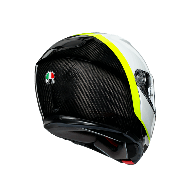 Entirely built in Carbon Fiber (shell and chin), this specific structure achieves the same protection performance of MotoGP's Pista GP R in an incredibly light weight construction, combing the highest levels of comfort and safety. Designed to offer 190° horizontal view as the human eye capability, SportModular has been conceived in the wind tunnel for superior quietness, aero stability and ventilation.
