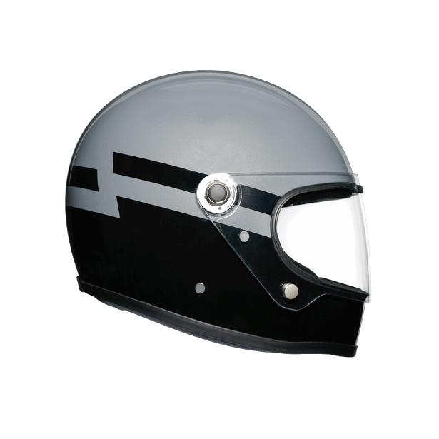 Clean lines, iconic colors, minimalist combinations: simplicity and elegance mark the early versions that led to the retirement of single-color graphics. The bold contours on the chin piece and the contrasting lower plate give it an even thinner appearance. Super AGV reinvents racing as we once knew it.