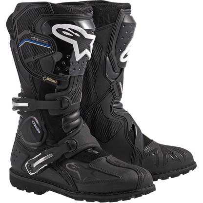 A technical and durable touring boot brimming with intelligent design features, the Alpinestars Toucan GORE-TEX Boots are ideally suited to long days in the saddle. With 100% weatherproofing provided by a GTX liner, integrated protection systems and superb comfort and flexibility features the Toucan Boots are indispensable for rugged roads. The Toucan's unique buckle design is pulled straight from Alpinestars' dirt boots and helps to shed dirt and mud while maintaining a low profile to minimize the likelihood of damage to the buckle or your bike.