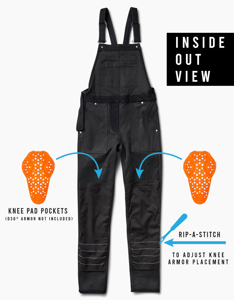 Enter Dyneema! At 15 times stronger than steel, Dyneema is the strongest fiber ever created. Dyneema Denim is CE Level 1 approved abrasion resistant and has allowed us to create the Two Wheels Overalls. We are thrilled to offer single layer protection that is lightweight and breathable. With 4.5 seconds abrasion resistance rating these overalls are, not only stylish and comfortable, but they will protect your skin in case of a slide! The fit is versatile with adjustable shoulder straps and they were designed with enough length to offer the option to roll the cuff for shorter gals. A relaxed fit leaves room for layering the Deploy Armored Leggings underneath for an added layer of impact protection. A flattering fit on a wide variety of body types and pockets galore to store all your snacks. As the weather heats up, the Two Wheels overalls are the perfect piece to take on your summer road trips.