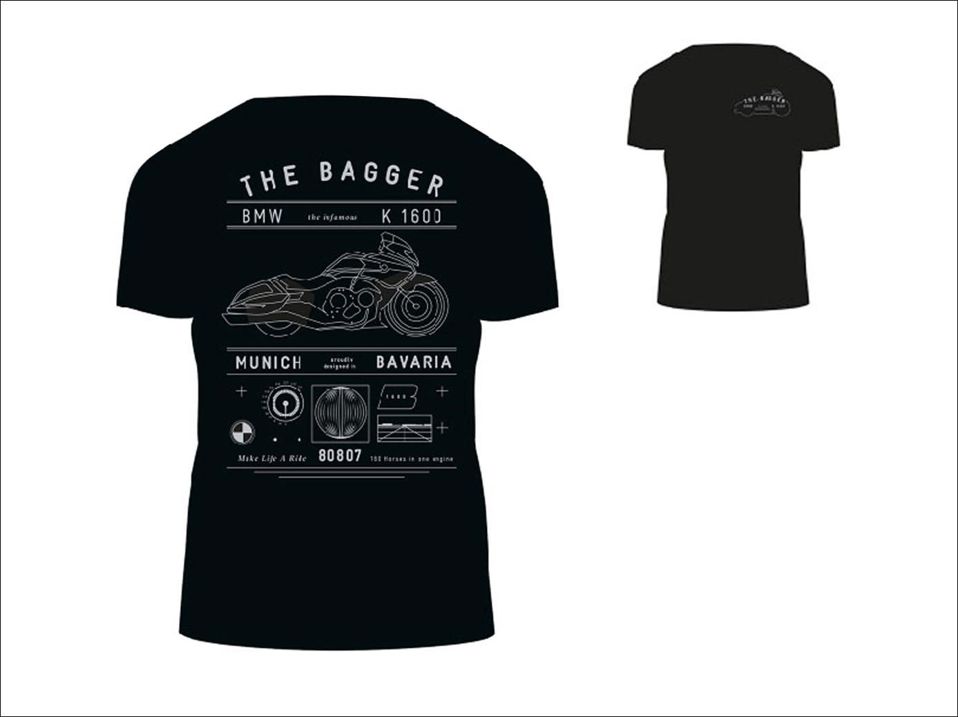 Large-area motif print with "THE BAGGER" inscription on the rear