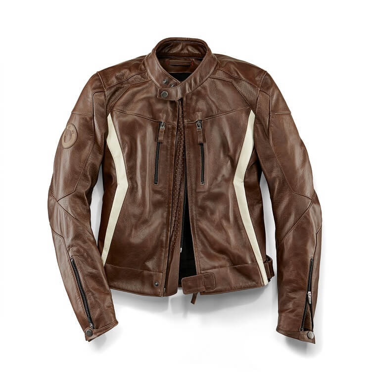 - Double front zip with perforated leather inner serves as an air vent