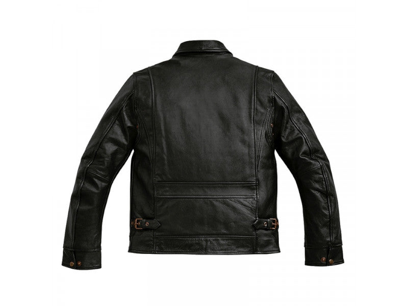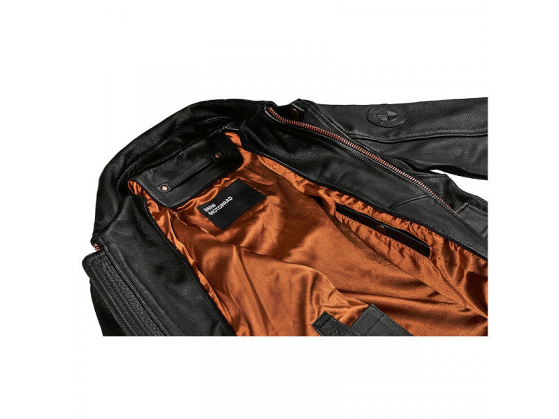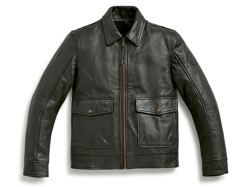 The wearer of a Engineer leather jacket cuts a fine figure wherever they appear. The jacket is made of cowhide leather 1.2 mil-limetres thick and it represents the archetypal, classic blouson style of the 1940s. It has two large front pockets over special hand-warmer pockets, plus two closable inside pockets. The collar closes with stud fasteners.