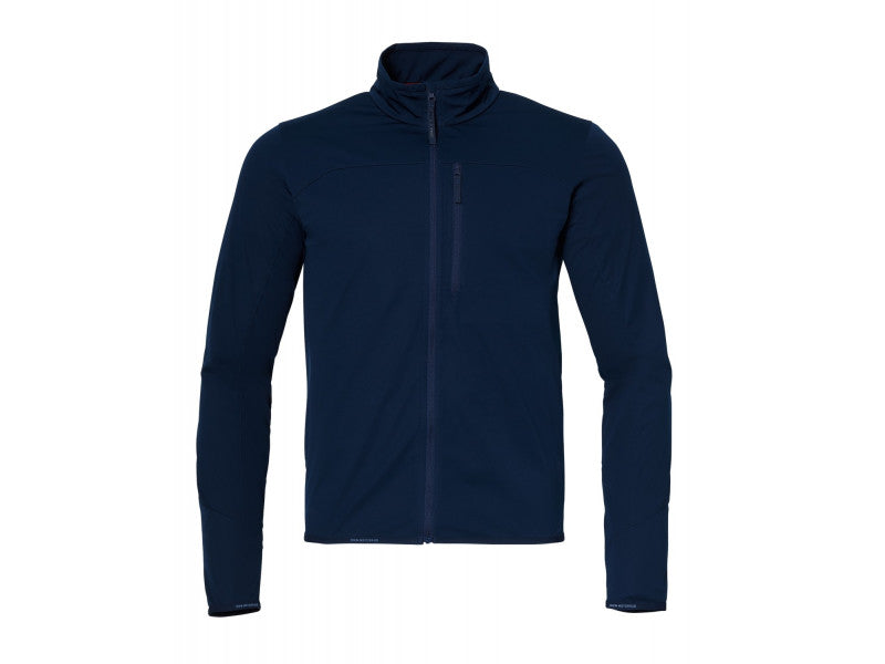 The GS softshell jacket is great to wear under a motorbike suit, protects against the wind and is tight-fitting. It has a small packed size for simple stowage in the backpack, a zipped Napoleon pocket on the left chest, a high, tight-fitting collar and a practical connecting zip for simply joining motorbike jacket and trousers at the lower back. The jacket is made of 100 % PA - a lightweight, thin softshell material - has “BMW Motorrad” in red on the back and a full-length zip for quick opening. The GS softshell jacket is available in red for women and blue for men.