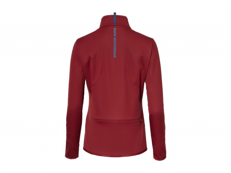 The GS softshell jacket is great to wear under a motorbike suit, protects against the wind and is tight-fitting. It has a small packed size for simple stowage in the backpack, a zipped Napoleon pocket on the left chest, a high, tight-fitting collar and a practical connecting zip for simply joining motorbike jacket and trousers at the lower back. The jacket is made of 100 % PA - a lightweight, thin softshell material - has “BMW Motorrad” in red on the back and a full-length zip for quick opening. The GS softshell jacket is available in red for women and blue for men.