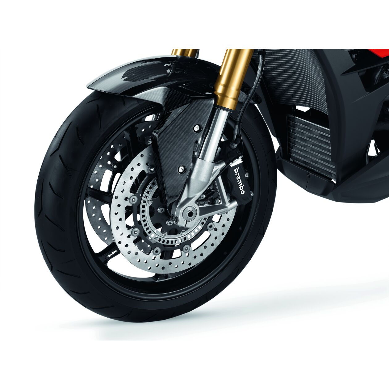 The black anodised HP forged front wheel offers improved handling and suspension characteristics thanks to its weight advantage. It weighs around 0.7 kg less than the standard wheel, which is particularly noticeable in fast S-bends.