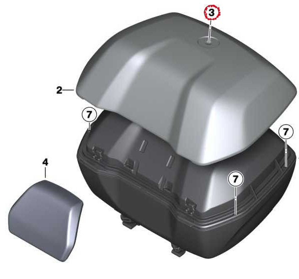 The 49-l waterproof top box has a painted lid and offers plenty of space (enough for two helmets). The optional backrest pad offers additional comfort for the pillion passenger.