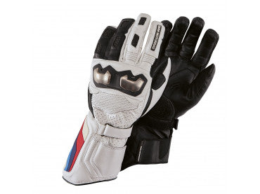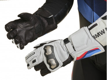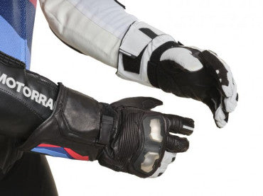 The M Pro Race Comp gloves stand for the highest performance and best possible protective function at the same time. Highly robust materials are used: for instance, titanium elements are integrated in the hard plastic 3D knuckle guard, the protective palm elements are made of rayskin and the back of the hand and shaft are completely fitted with Kevlar.