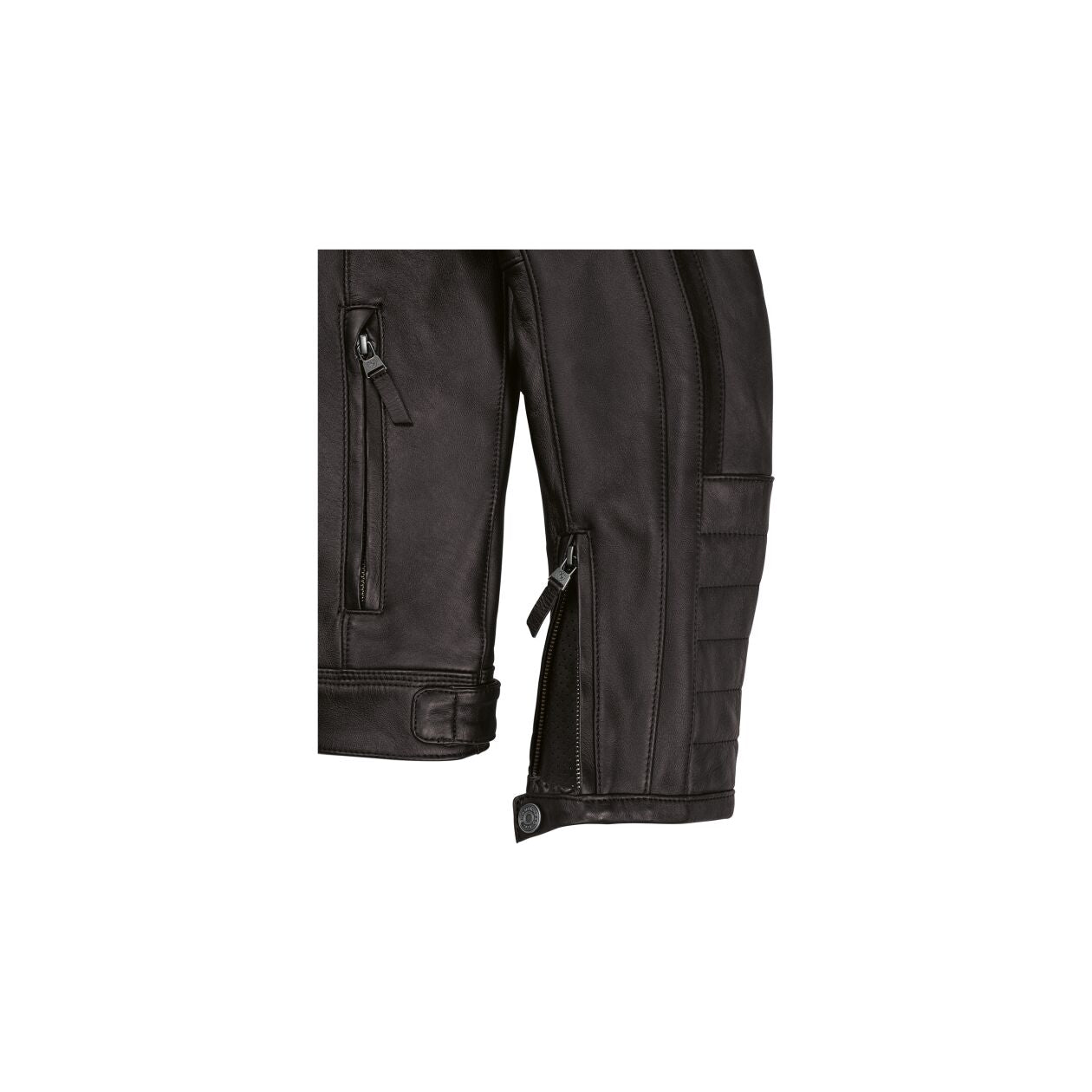 The Schwabing jacket revives a classic in a new design. Under the high-quality cowhide, the protectors on the shoulders, elbows and back (can be retrofitted) ensure safety, while numerous pockets offer storage options. Several ventilation options offer increased comfort.