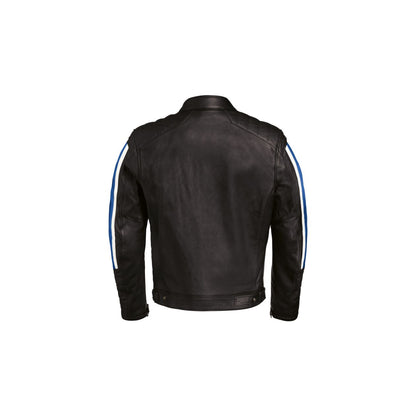 The Schwabing jacket revives a classic in a new design. Twin stripes on the sleeves set striking visual accents. Under the high-quality cowhide leather, NP Flex protectors on shoulders and elbows ensure safety while four outside pockets and three inside pockets offer stowage options. Several ventilation options at the front offer increased comfort.
