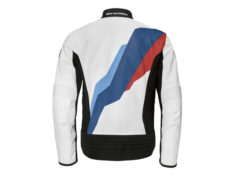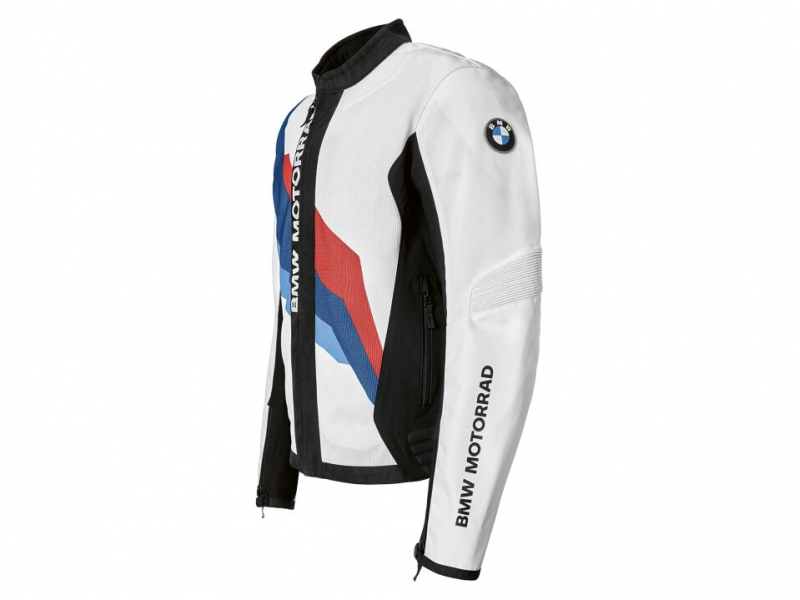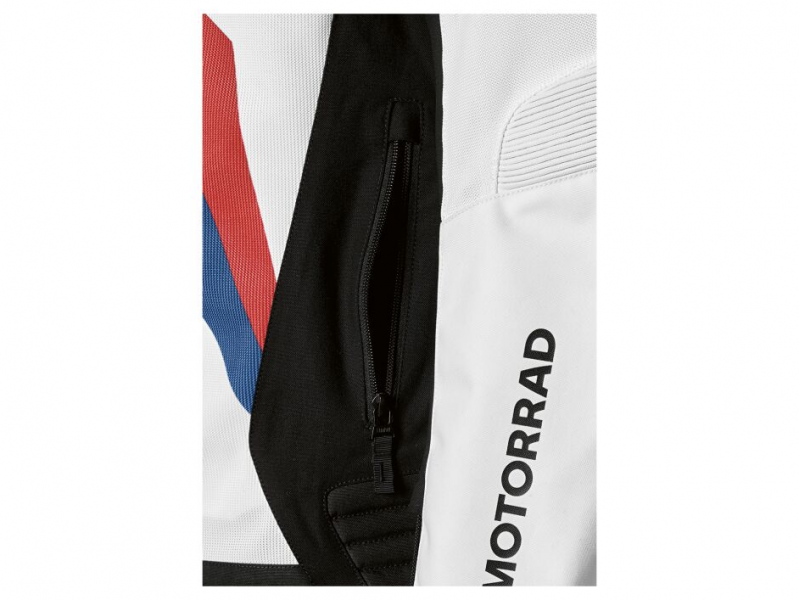 The Sidepod AIR jacket with eye-catching print in the M colours is a sporty summer jacket for warm temperatures. Its large-surface, integrated mesh material ensures optimum ventilation and the 3D spacer fabric at the back ensures pleasant air circulation. Stretch material is used under the armpits and on the inner arm for high comfort. The jacket has NP Flex protectors on elbows and shoulders. Retrofitting with an NP LR back protector is also possible. Two outer pockets, one inner pocket and a document pocket 4. Jackets. provide sufficient space for all of your important things. For combination with a pair of trousers, there is a 40 cm connecting zip according to BMW standard.