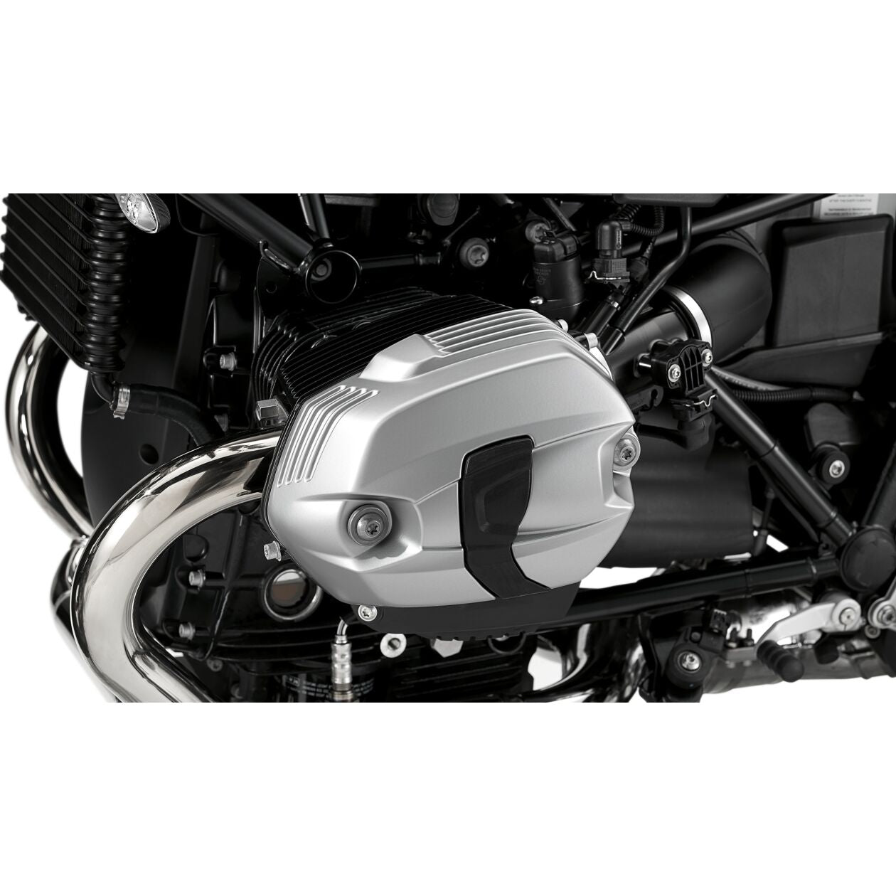 The silver cylinder head covers give the boxer engine an attractive appearance and the motorcycle an individual, high-quality look. The shape matches that of the standard covers in Granite grey.