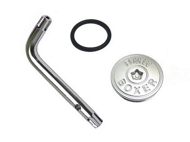 Vandal-proof lock for the oil filler pan for the engine of the R1200 and R1250 Boxer.