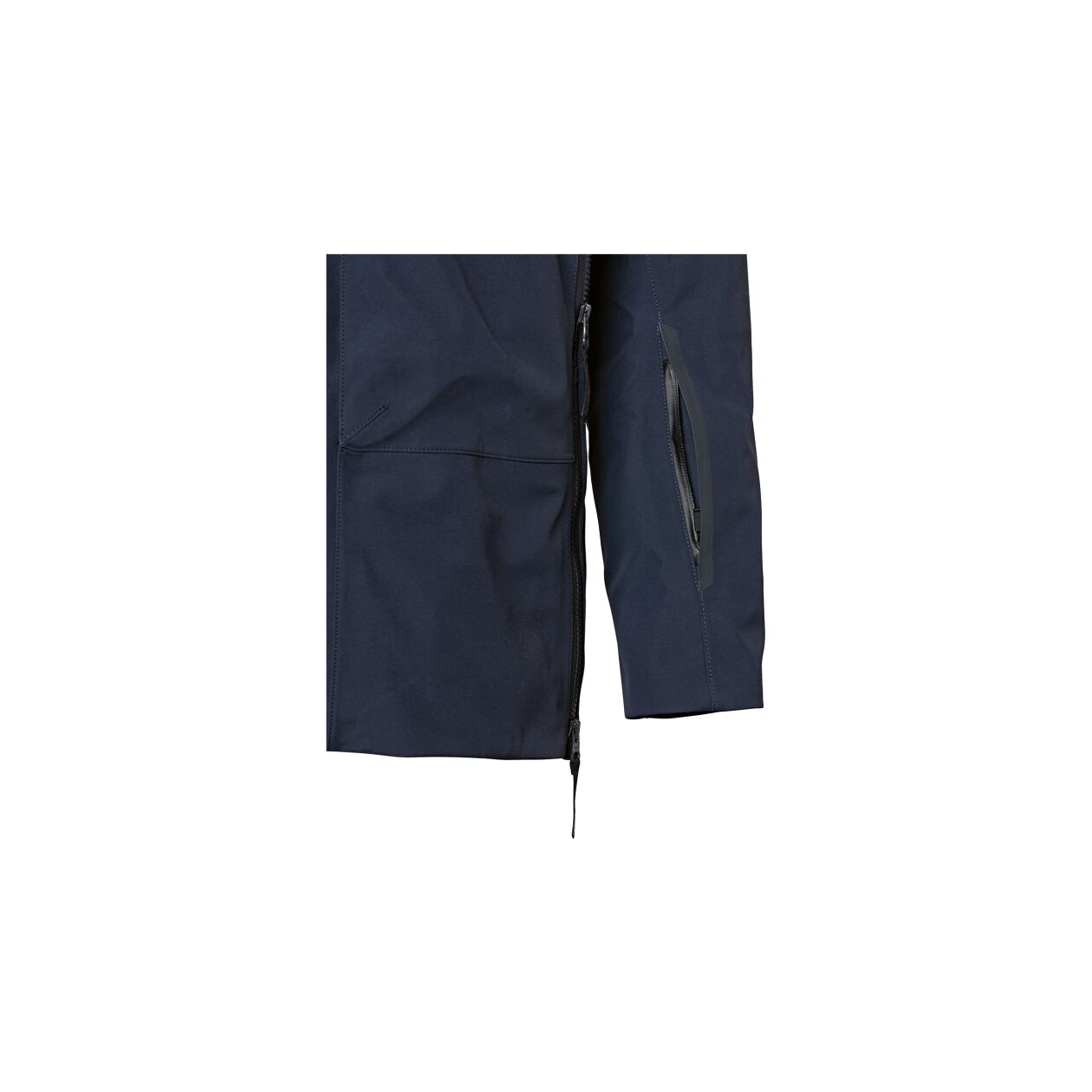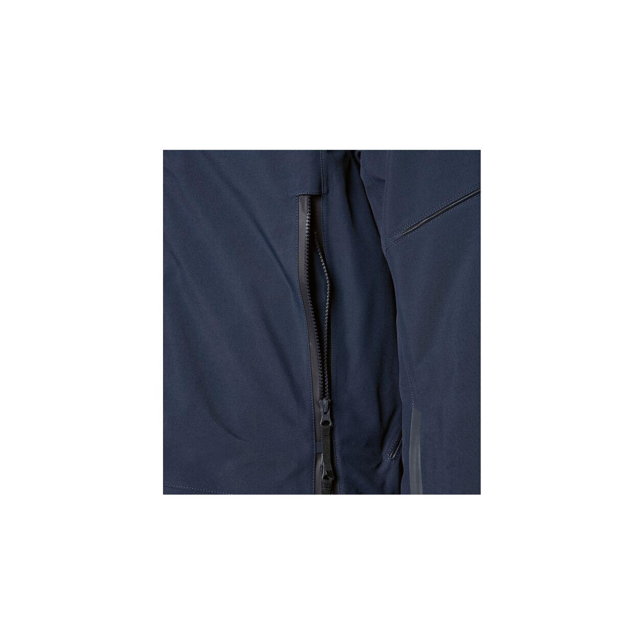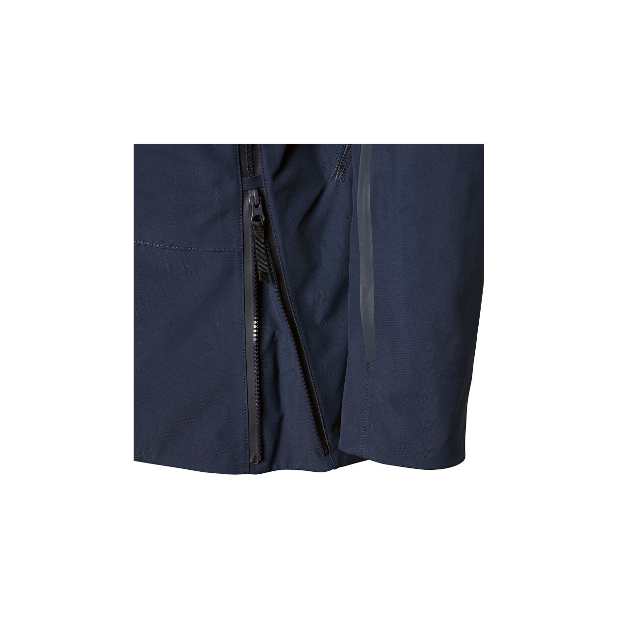 - Continuous front zip fastener with dual function: two watertight outside pockets while zip fastener is open at the top and more legroom when the zip fastener is open at the bottom