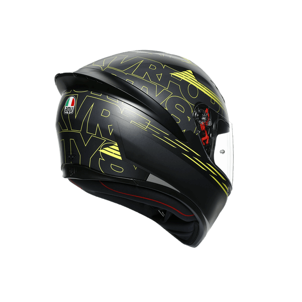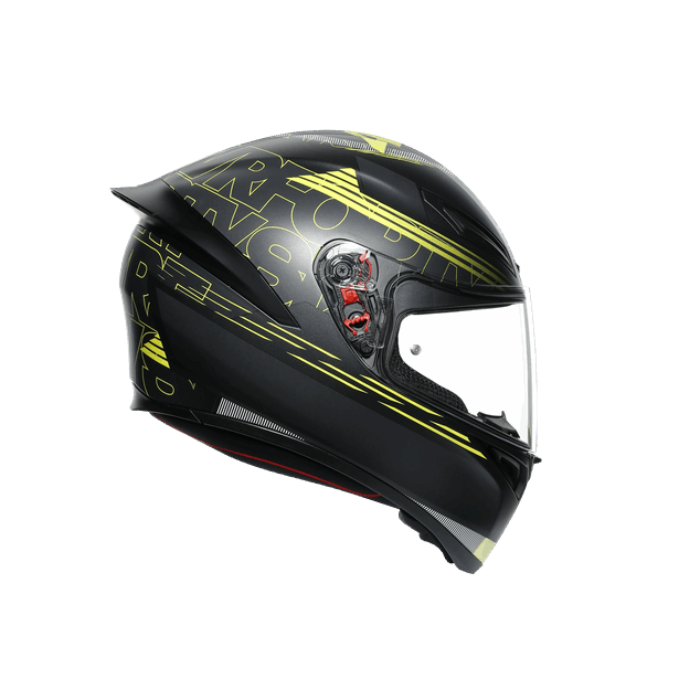 Aerodynamic shape, racing-developed front air vents and wind-tunnel engineered aero spoiler maximize performances while providing stability at higher speed. Panoramic anti-scratch visor allows a wider lateral and vertical field of vision for a total control of the environment. Comfort is no-compromise with Dry-Comfort soft removable interiors.