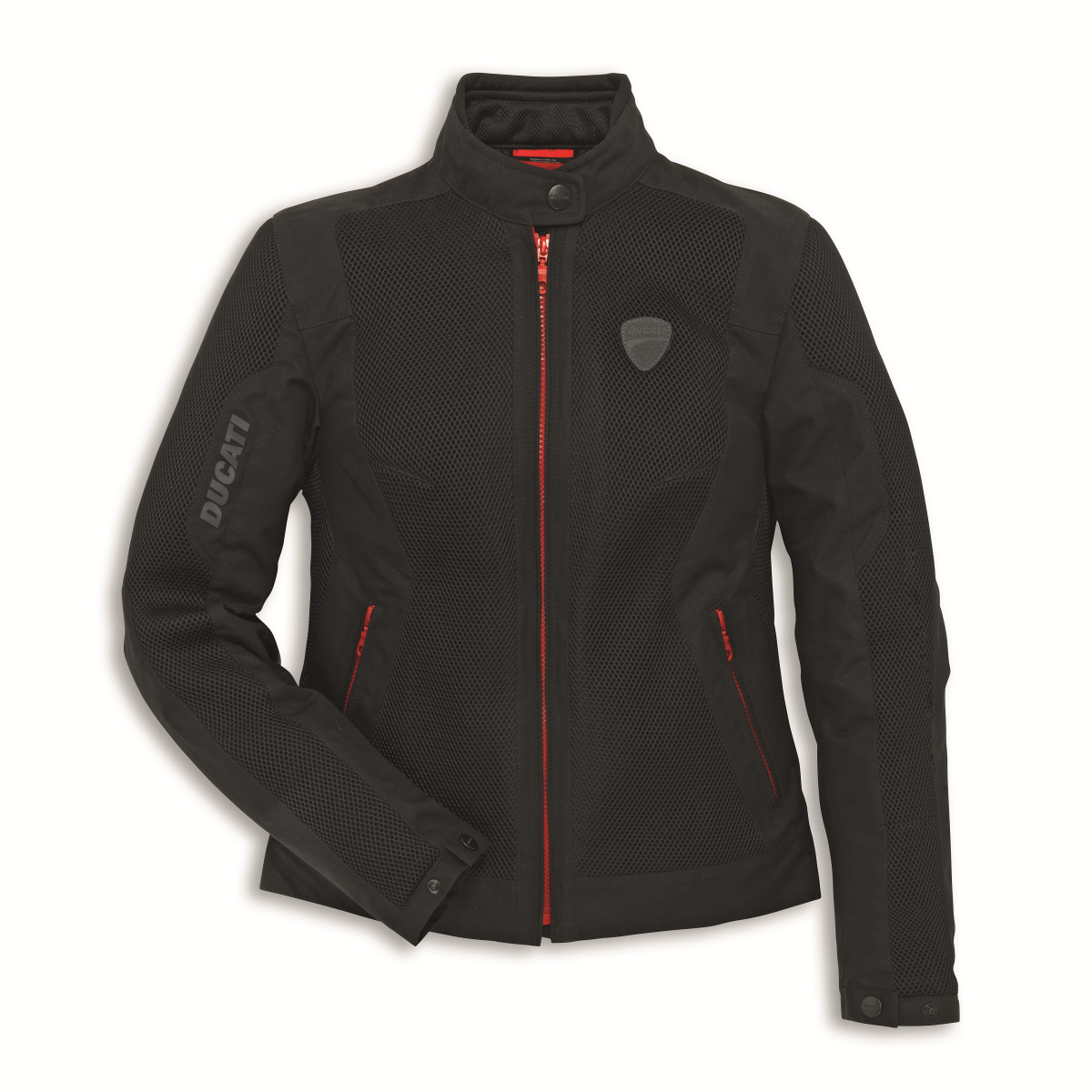 A full mesh constructed jacket for summer riding, Flow 2 is produced for Ducati by Spidi. This jacket comes with ForceTech armor in the shoulders and elbows and is pocketed for a Warrior back protector (sold separately). A trousers to jacket loop is fitted in the back of the jacket and will attach to any standard pant loop (belt loop) to prevent the jacket from riding up in the back. Includes Windout membrane windproof and water resistant detachable liner. Lightweight and extreme breathability make this jacket perfect for hot summer riding.