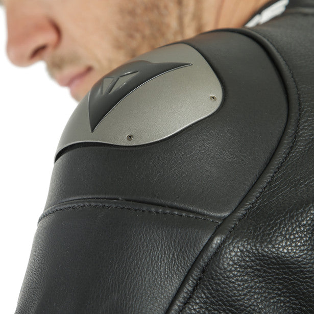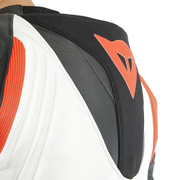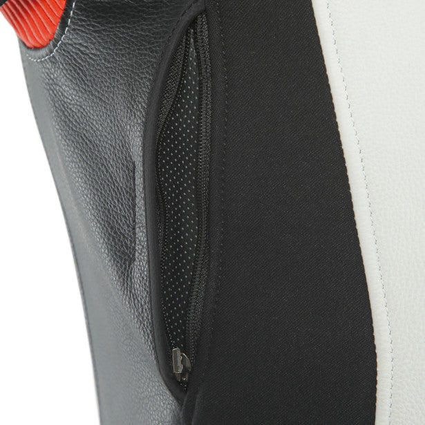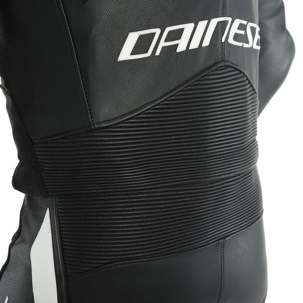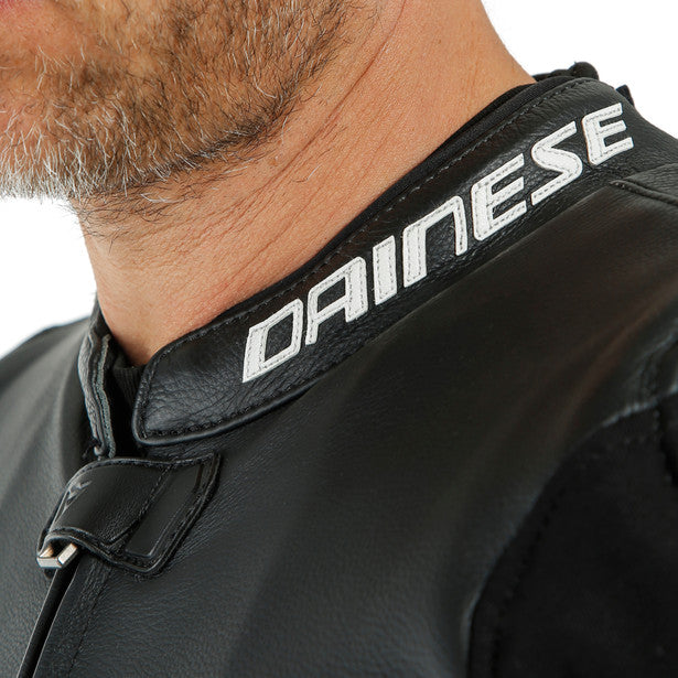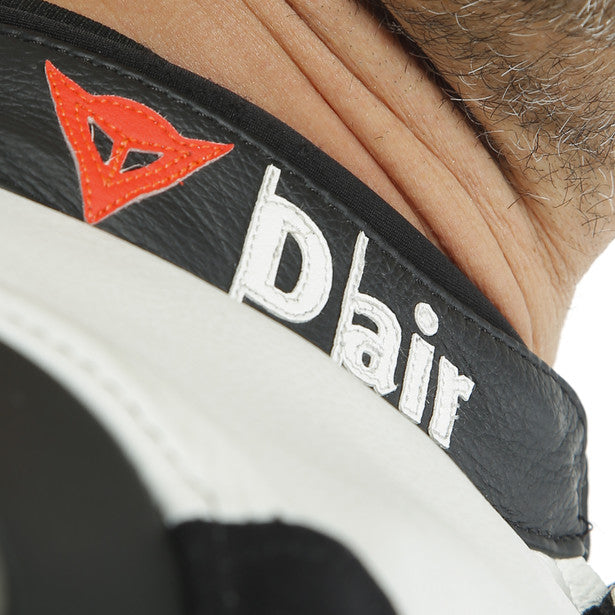 A two-piece suit in premium Tutu cowhide leather. Aerodynamic spoiler and Nanofeel lining combined with the protection guaranteed by the ultimate Dainese D-air® airbag system.