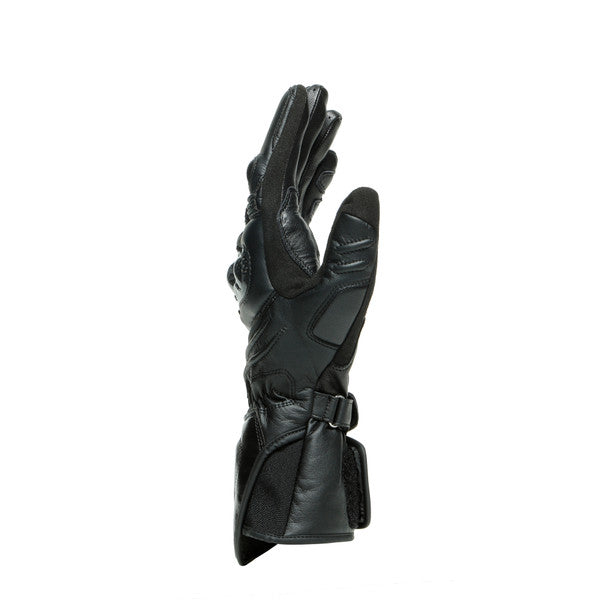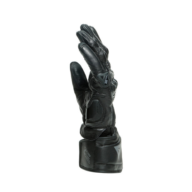 The Dainese Carbon 3 Gloves are a full gauntlet riding glove that balances everyday street comfort with features and design from the racetrack. As the name implies, a prominent carbon fiber knuckle guard across the back of the hand anchors the look. Leather reinforced impact zones, distortion control on the fourth finger and polyurethane sliders bring top tier safety tech to a glove that is tuned ergonomically for the street. When the road beckons, the Carbon 3 Gloves deliver.