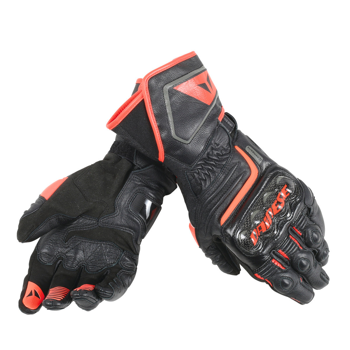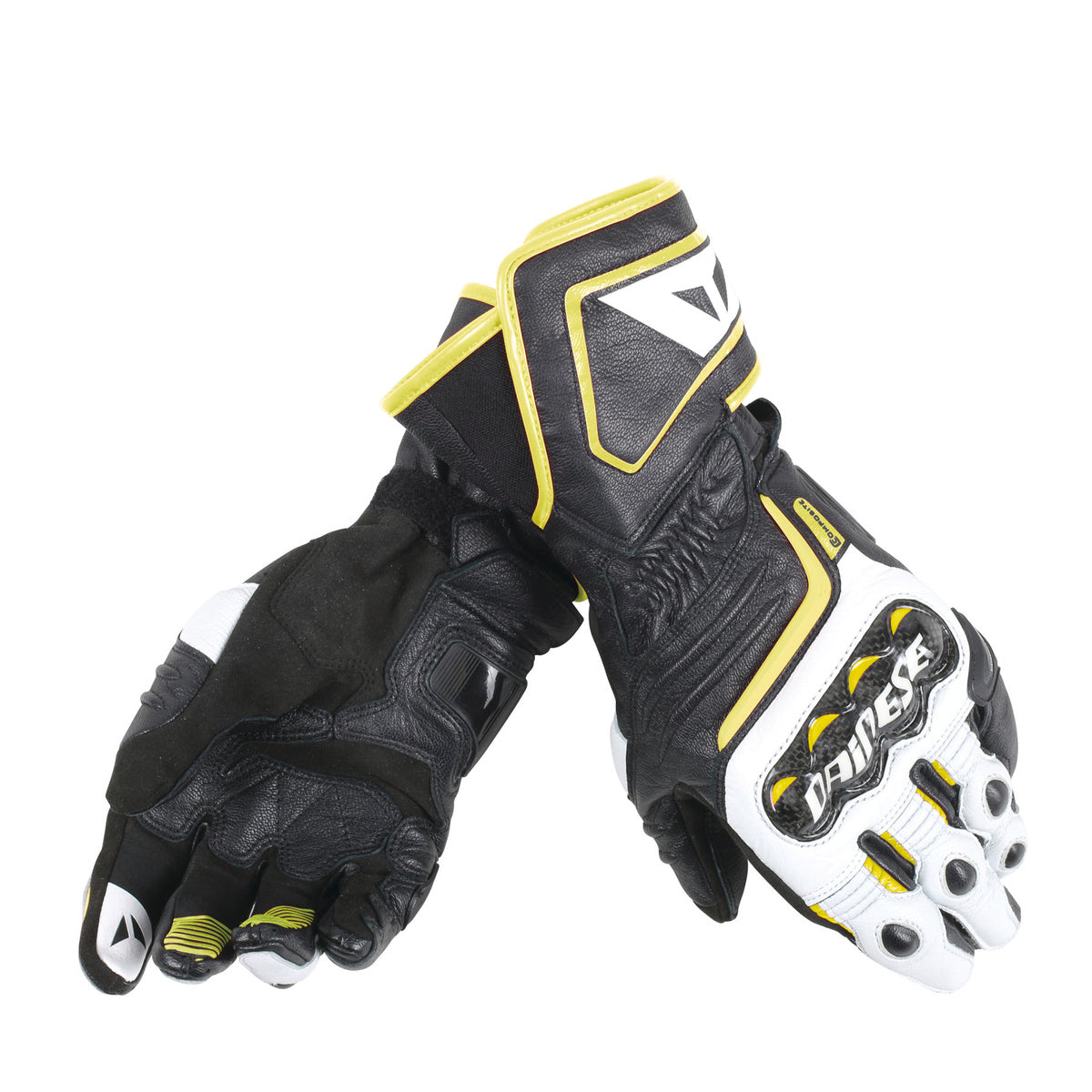 Dainese CARBON D1 LONG motorcycle gloves. Long certified sports gloves that offer a high degree of protection thanks to their knuckle carbon composite inserts. The palm and the finger joint polyurethane inserts provide extreme protection.