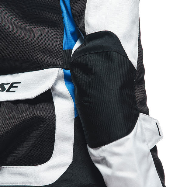 The Dainese Desert Tex is a summer adventure touring motorcycle jacket for both on and off-road trips that was developed with a lightweight and durable Poly600 fabric structure. It also has wide-knit Omega Mesh panels on the front and back, offering excellent ventilation when the internal windproof lining, which can be stored in the back cargo pocket, is removed. Impact protection is guaranteed by soft Pro-Armor protectors with EN 1621.1 Level 2 Type B certification on the shoulders and elbows, which are enhanced by the G1 or G2 back protector pocket and the Double Chest protector. Its fit is fully customizable, with an adjustable collar, waist, sleeves, and cuffs. It is ideal for long motorcycle trips in hot climates, switching from road to off road, making the Desert Tex jacket the perfect mix of versatility, comfort, and practicality. Equipped with a jacket/pants connection system and numerous pockets – four on the front, one on the back and one inside – to store small items, keeping them handy during the trip.