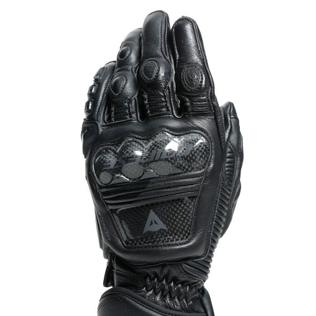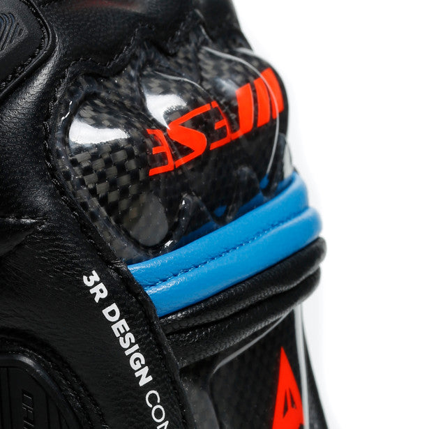 Dainese continues the tradition of a hard-hitting track and street hybrid glove with the Druid 3 Gloves. Ergonomically cut for all-day comfort, the Druid 3 Gloves pull features directly from Mugello and Misano. A goatskin chassis with sheep leather reinforcement maximizes communication through the bars. Carbon fiber inserts across the knuckles and on the back of hand mitigate impacts and abrasion. Additional hard sliders at the palm and wrist and the DCP system at the fourth finger help nest the Druid 3 Gloves even higher up the glove food chain.