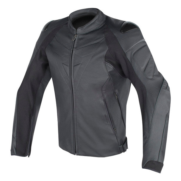 For the rider seeking maximum protection without the racetrack fanfare, the Dainese Fighter Leather Jacket is packed to the gills without the frills. The seamless thermoformed soft inserts and dark aluminum shoulders offer track-level protection without betraying the street aesthetic. The Dainese demons on the chest and back are decidedly muted. Elastication in the shoulder blades, inner arms, cuffs and collar ensure the D-Skin 2.0 leather chassis interfaces ergonomically with the rider. The Dainese Fighter Leather Jacket adapts smoothly to varying temperatures with a removable thermal liner and staves off discomfort with an antimicrobial Silver Ion treated Nanofeel liner. Replete with composite protectors in the elbows and shoulders and prepared for CE level 1 and 2 back and chest protection, the Dainese Fighter Leather jacket has everything but the sponsor patches.