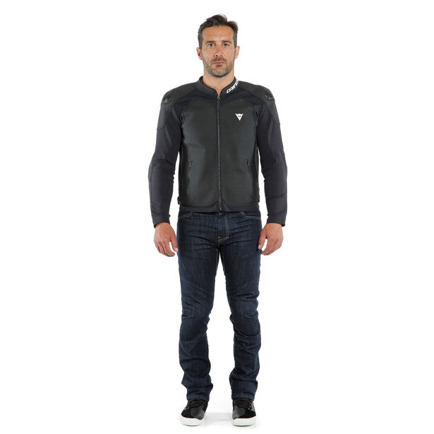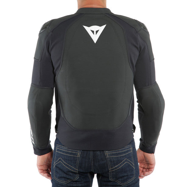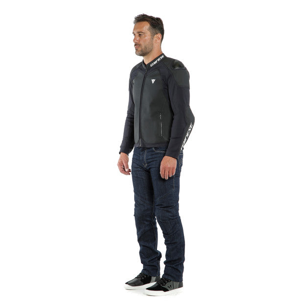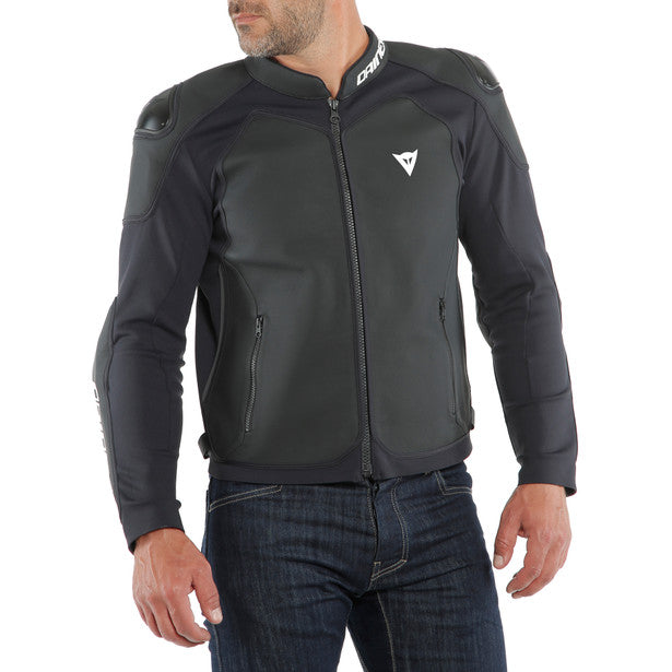 Dainese continues to improve motorcycle protective apparel with the Dainese Intrepida Leather Jacket. The exclusive Arrow XF fabric makes up the framework of the jacket. This proprietary material allows for more simplistic design since there's less stitching from foregoing air vents or inner linings. Leather reinforces the elbows, shoulder and back for even more abrasion resistance. CE rated armor cover the elbows and shoulders with a pocket to add a back protector.  Aluminum shoulder plates complete the sporty look and complement the athletic fit.