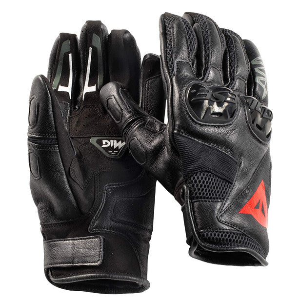 The Dainese MIG C2 Gloves have racing-inspired style to spare but are extremely comfortable. They are made of abrasion resistant cowhide and the palms are reinforced with synthetic suede. Protection and safety are covered thanks to polyurethane inserts over the knuckles and by soft inserts on the thumb and little finger. Other features such as adjustable wrists, pre-curved fingers and mesh inserts complete the package.