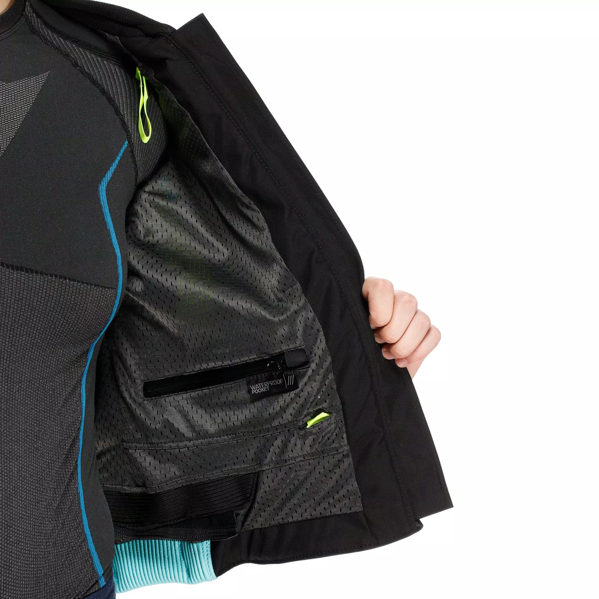 This garment’s level of functionality in any weather condition is enhanced by a practical internal waterproof pocket where riders can store their electronic devices in case of bad weather, as well as by air vents on the chest and air extraction zippers at the sides in case of sessions at high temperatures.