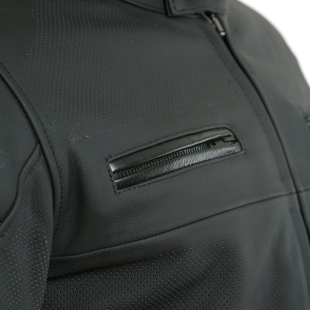 The Dainese San Diego Perforated Leather Jacket is a cowhide leather jacket perfect for everyday use and for every ride. Comfortable and safe thanks to the addition of soft certified Pro-Armor protectors at the shoulders and elbows, the fit can be customized by adjusting the waist and cuffs.