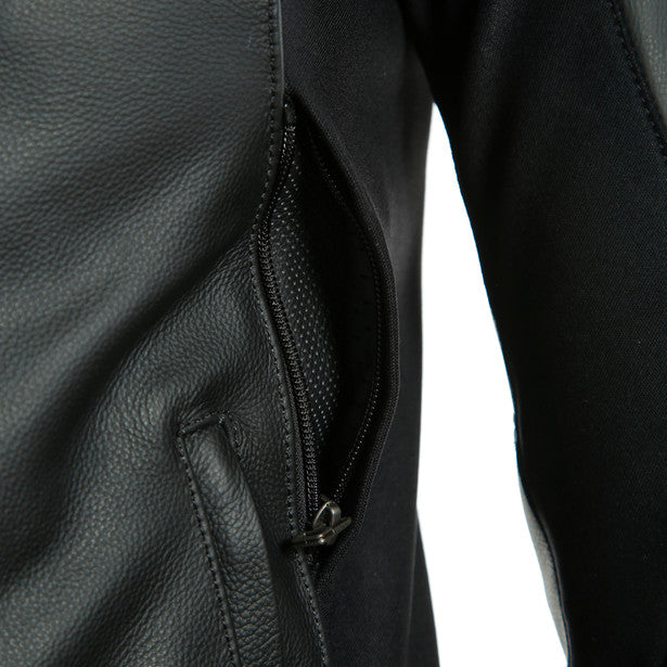 The Dainese Sport Pro Leather Jacket is a premium cowhide jacket with a sports fit. Its specific fit at the chest, shoulders and neck makes for a garment that offers unique ergonomics, comfort and lightness. Protection comes in the shape of Pro Armor inserts at the shoulders that guarantee both flexibility and lightness. Pro Armor works in synergy with the interchangeable aluminum shoulder plates which offer the best protection against impact and support any sliding along the asphalt in the event of a fall. Unlike plastic materials, metal offers excellent abrasion resistance, does not degrade during a slide and does not trigger any dangerous rolling or twisting of the joint. Certified composite inserts protect the elbows. The safety equipment is completed with pockets to accommodate a model G back protector and chest protectors. Air vents and extractors that can be opened and closed with zippers ensure maximum comfort on the hottest of days.