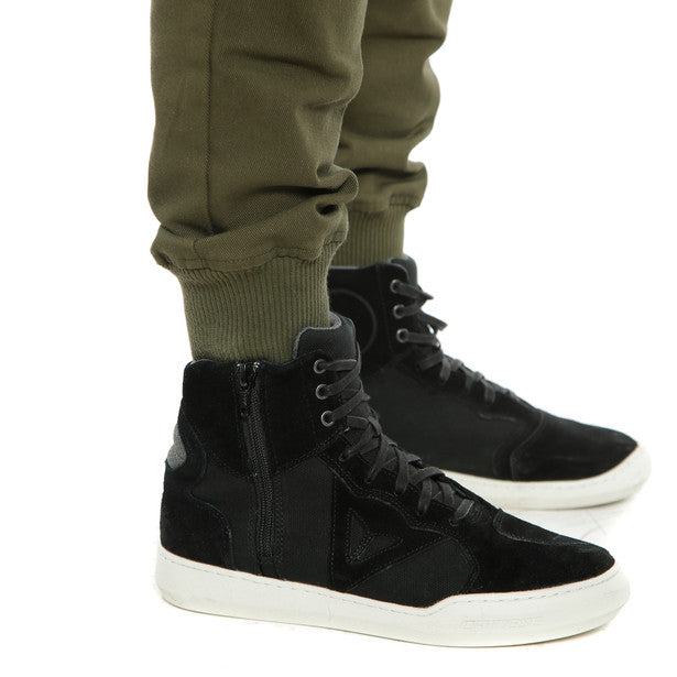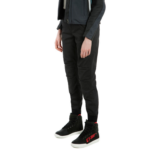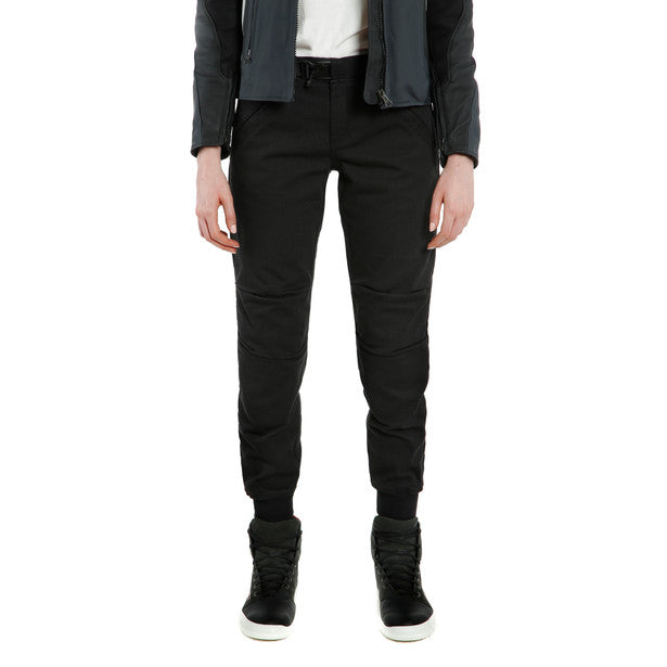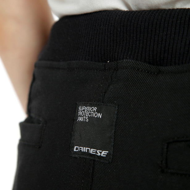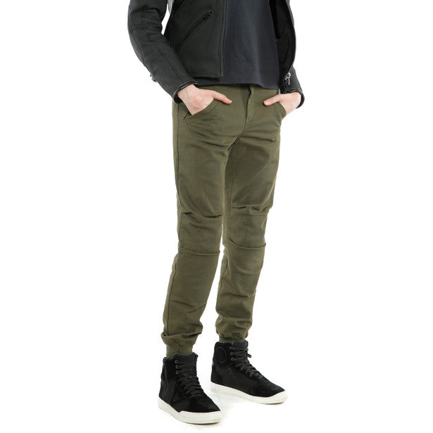 The Dainese Trackpants Tex Pants are a technical motorcycle garment that combines Dainese safety with the comfort and convenience of casual pants. They are made with innovative Armalith fabric, a soft but extremely abrasion and tear resistant composition of cotton, Lycra and Ultra High Molecular Weight Polyethylene fiber. Heightened protection in a single-layer yarn with no additional layers, which has the same consistency and fit as normal cotton pants. The Trackpants model combines the comfort of sports pants with the safety of a technical motorcycle garment, thanks to Pro Shape 2.0 certified soft protectors at the knees and hips.
