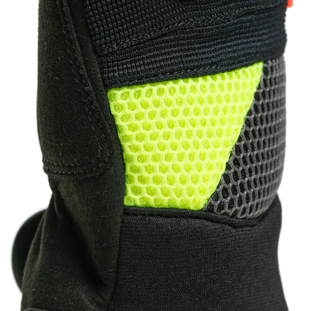 The VR46 CURB SHORT gloves feature a highly ventilated fabric construction for optimal comfort and confidence on the saddle during the summer months . Fully certified as a guarantee of Dainese's superior safety standards, whatever the terrain, from urban to off-road.