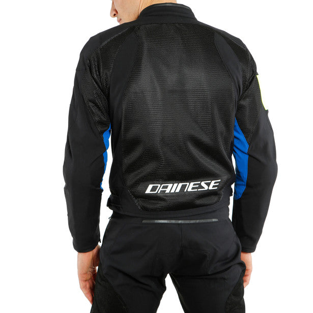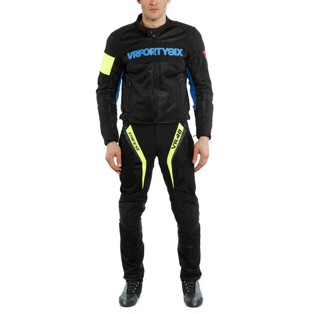 The VR46 GRID AIR sport jacket, belonging to the exclusive VR46 by Dainese collection, allows you to wear Valentino Rossi’s style when temperatures are high. It is made of Quick-Dry fabric with large mesh panels to ensure perfect ventilation and maximum comfort. On the sleeves there is a practical anti-flotation system to prevent the fabric from waving at high speeds that, together with the soft inserts on the collar, make the jacket extremely comfortable. To complete the VR46 GRID AIR there is a comfortable windproof lining that can be fitted internally when the temperature drops.