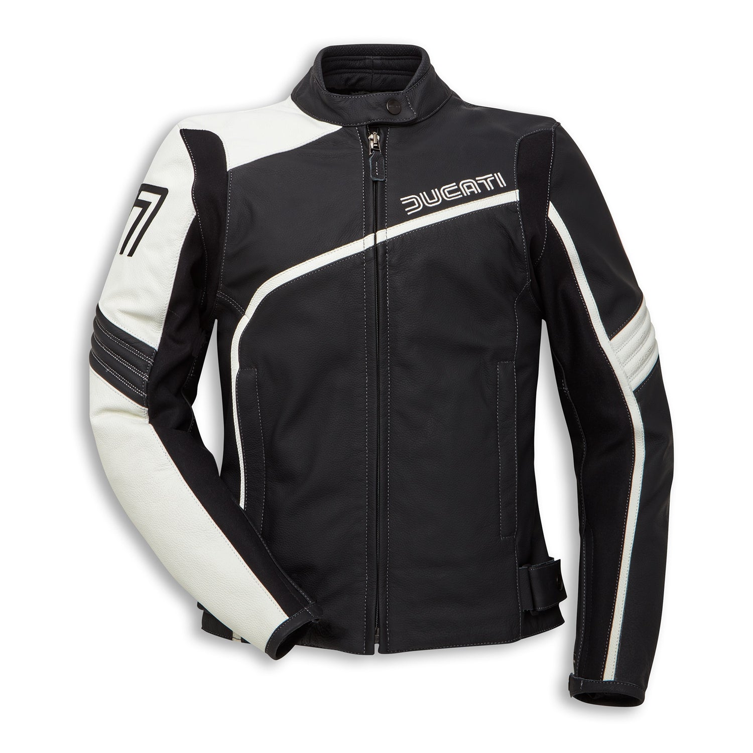 Available in men’s and women’s versions - CE certified - The Ducati 77 line, which takes its name from the year in which Giorgetto Giugiaro created the iconic logo appearing on all Ducati garments, is a modern take on the style from that era, characterized by asymmetries and large areas of color