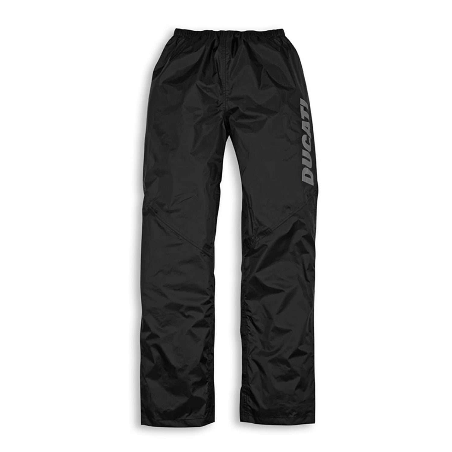 These rain-proof trousers are a mix of lightness, resistance and practicality; they can be matched with the jackets of the same line in order to complete a perfect Ducati look also during the rainy season. Made with PVC-free polyamide, resistant to a 10,000 mm water column and fitted with inner heat-sealed seams to ensure top-level waterproof performance. Great comfort thanks to the stretch waist and the adjustable bottom. Extremely practical, quick to wear and easy to pack back in the supplied pouch. The reflex print applied on the left leg increases safety in poor visibility conditions. The perfect item for riders who are never afraid, even of the most challenging weather.
