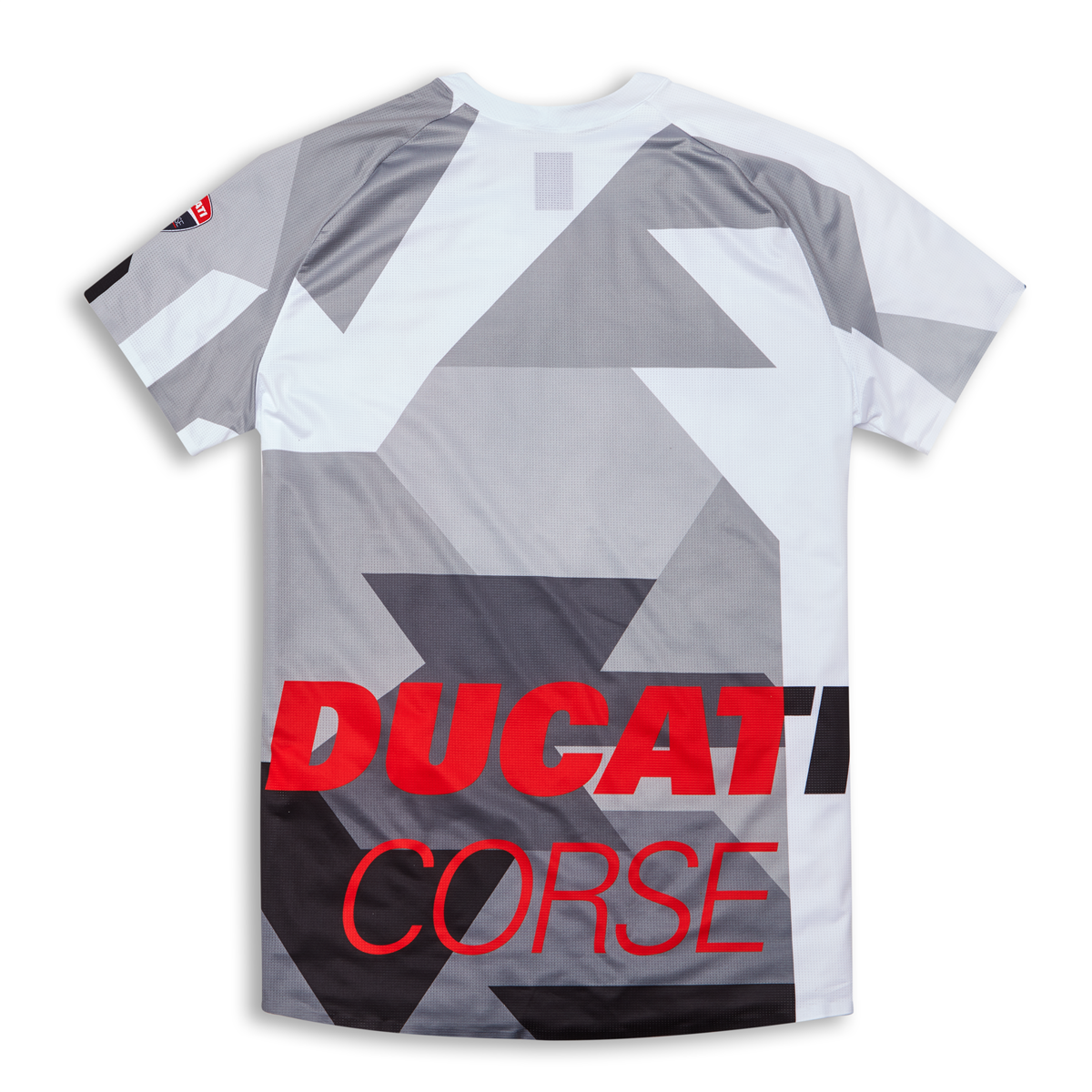 Ducati Corse T-shirt with short sleeves in technical fabric, for sports enthusiasts who do not want to give up their Ducati style even when riding their Mountain Bike. The raglan sleeve ensures maximum freedom of movement and, combined with the cool, stretchy and lightweight material, makes the garment imperceptible on the skin, ideal for the hottest summer days when breathability and ventilation make the difference. The tapered cut and the geometric graphics, created by Drudi Performance and inspired by the racing world, give the garment a modern and gritty look, made unmistakable by the Ducati logo and colors.