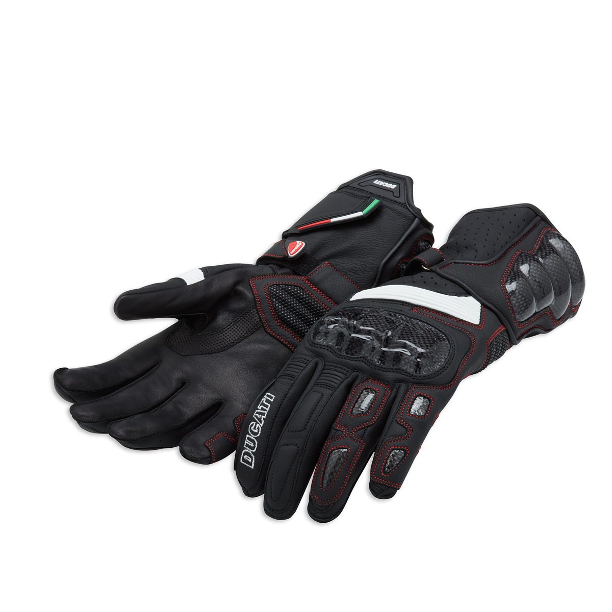 Performance C2 gloves made exclusively for Ducati by Held were specifically designed with a sporty fit. They are made of a mix of goat leather, cowhide and Superfabric® to provide softness, sensitivity to commands, and protection for the various parts of the hand. C2 Performance gloves are equipped with carbon protections on wrists, knuckles, and fingers, shock absorbing padding, and internal reinforcements in aramid fiber. Available in two color versions, they are CE certified according to the latest European standards.