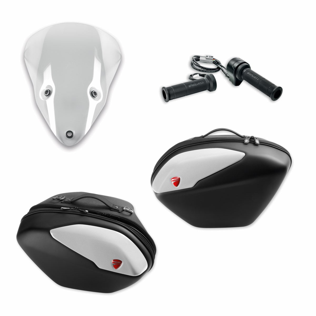The perfect selection of gear to maximise comfort on long journeys. The smoke-tinted windscreen ensures better aerodynamic protection that you will not want to miss. With its heated grips and the lightness of the spacious expandable side panniers, the pleasure of travelling is truly complete.