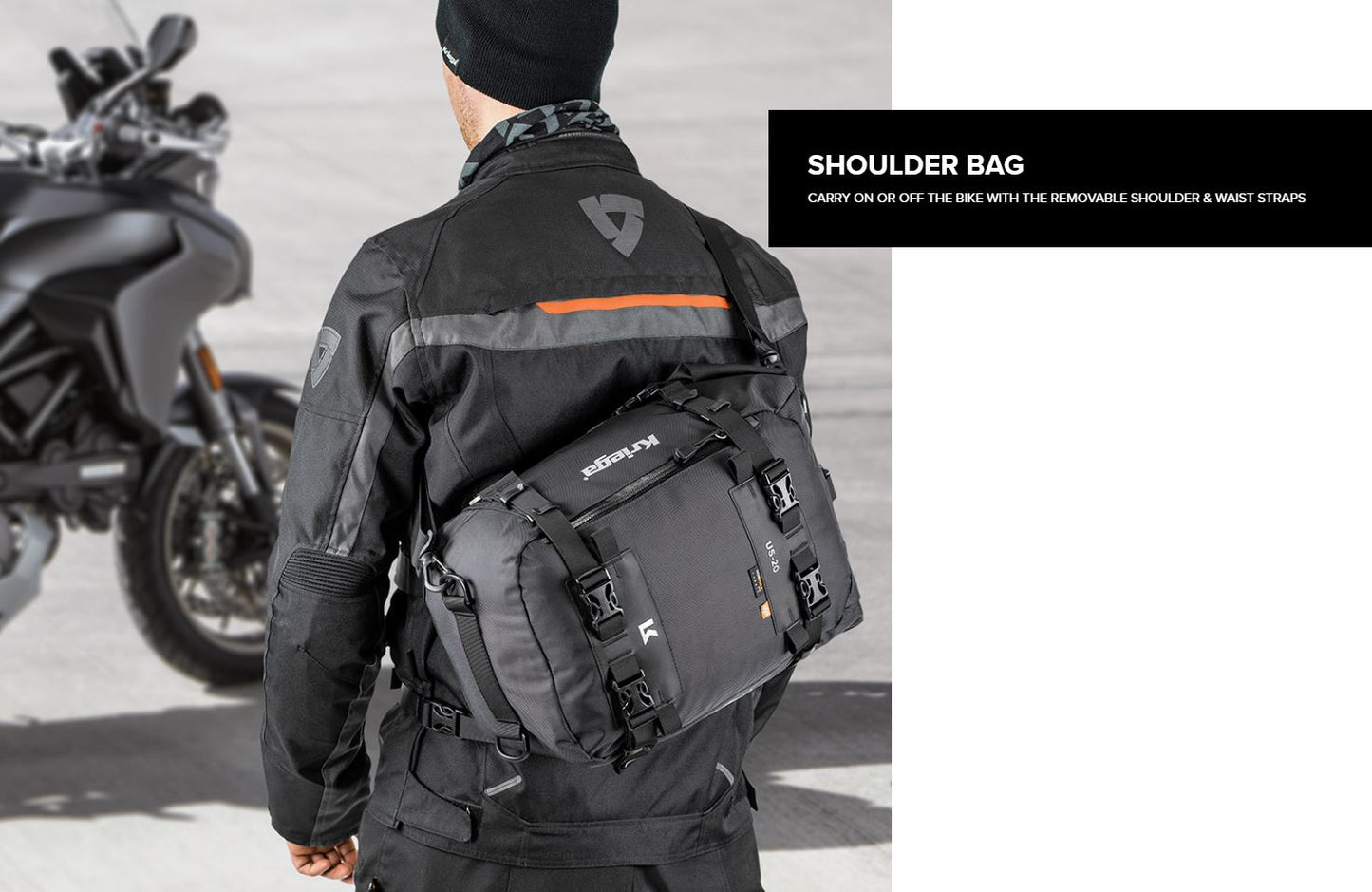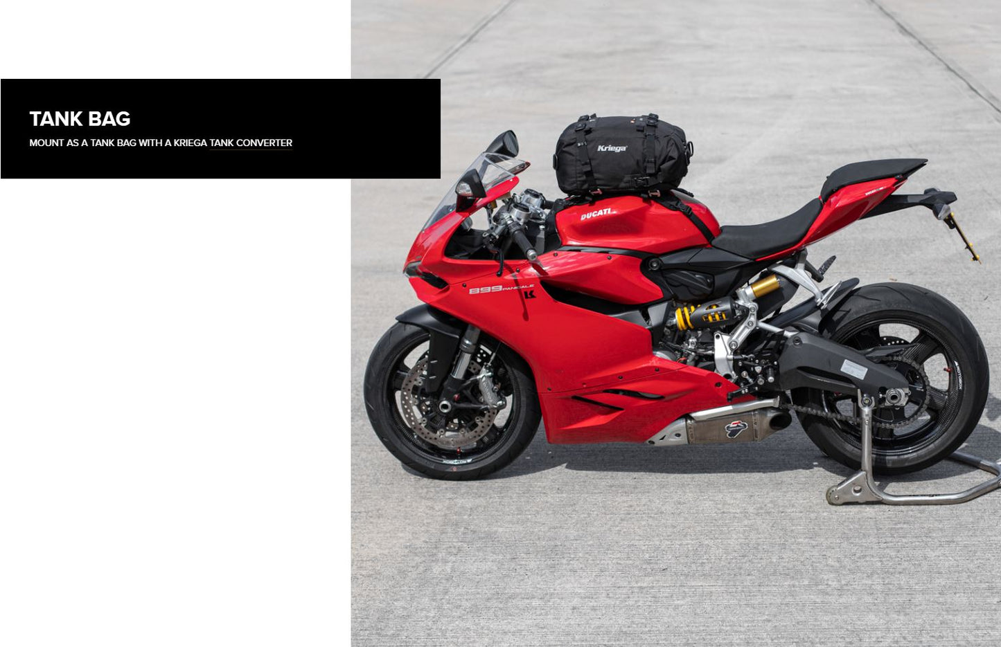 - Use as a tank bag, with the addition of a Kriega TANK Converter. (sold separately)