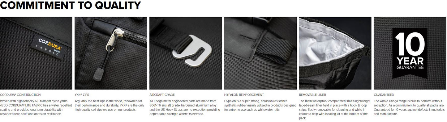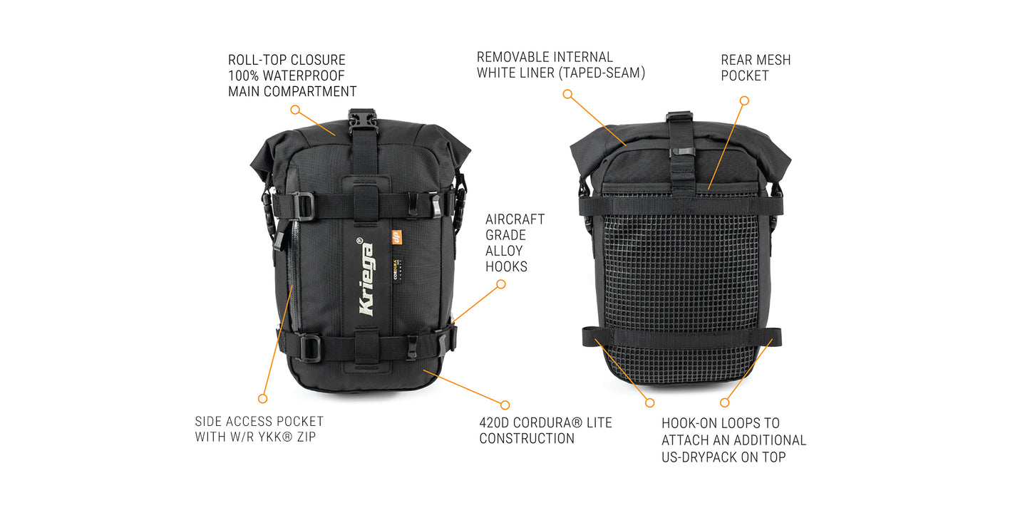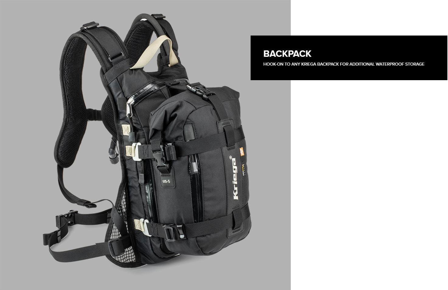 - Hook-on to any Kriega Backpack for additional waterproof storage.