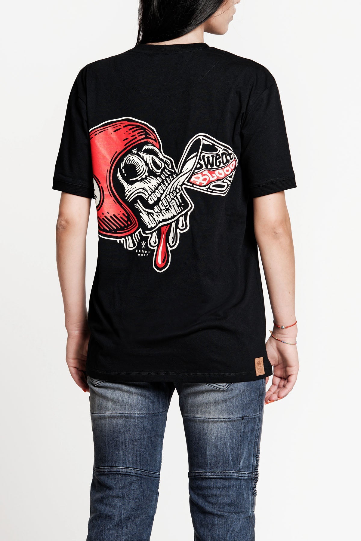 Bright and bold, MIKE RED SKULL 1 truly stands out from the crowd. Be different and daring with this iconic t-shirt; showcase your riding spirit wherever you go. A bright red skull complements our stand-out logo at the front of the t-shirt at the back. Original designs and detailed graphics meet the highest quality ECO cotton fabric, bringing Pandomoto’s values to life. Breathable, comfortable, easy to wash, and highly durable – this t-shirt will easily become your second skin and will accompany you through many adventures. Unisex, regular fit, and featuring ribs on sleeves.
